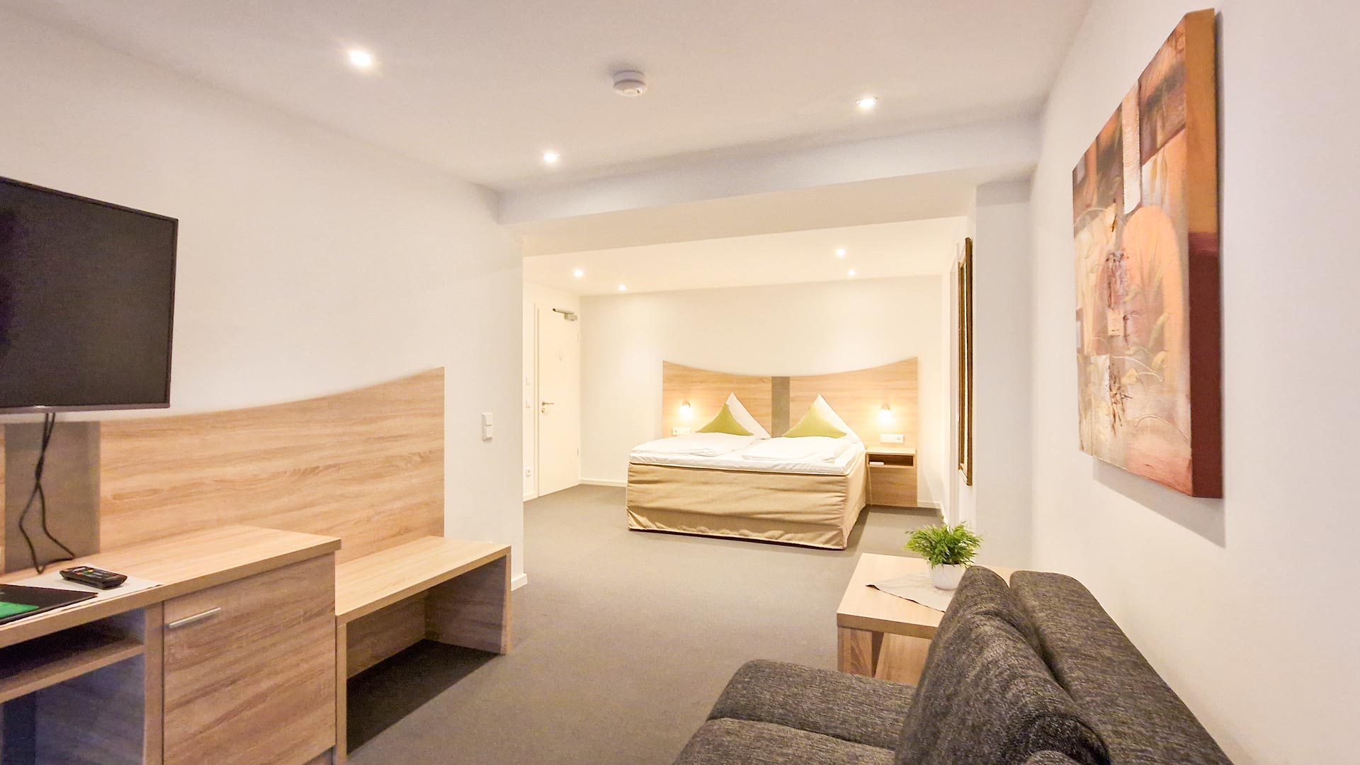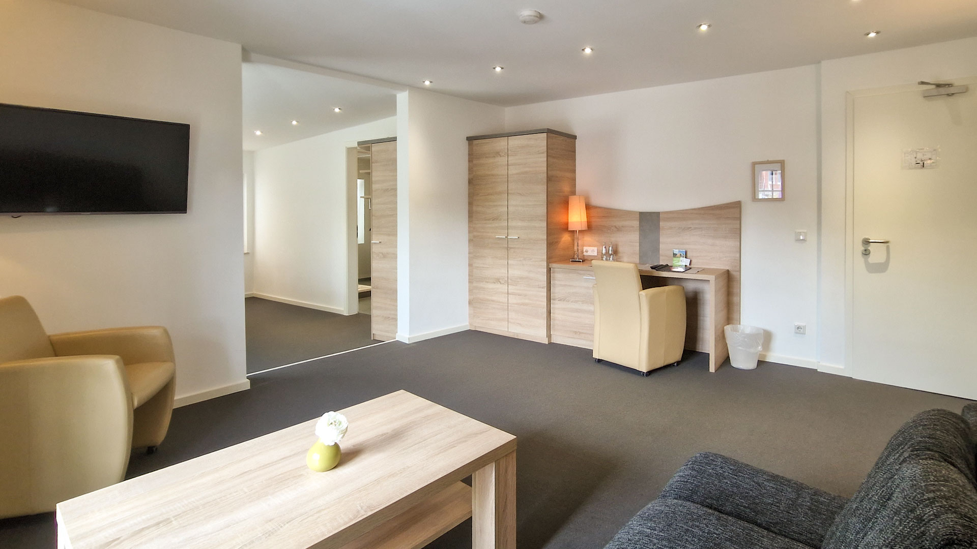 geräumiges 2-Zimmer-Appartement mit 4 Betten (separates Kinderzimmer), Dusche/WC und Sat-TV, WiFi, inkl. Frühstück